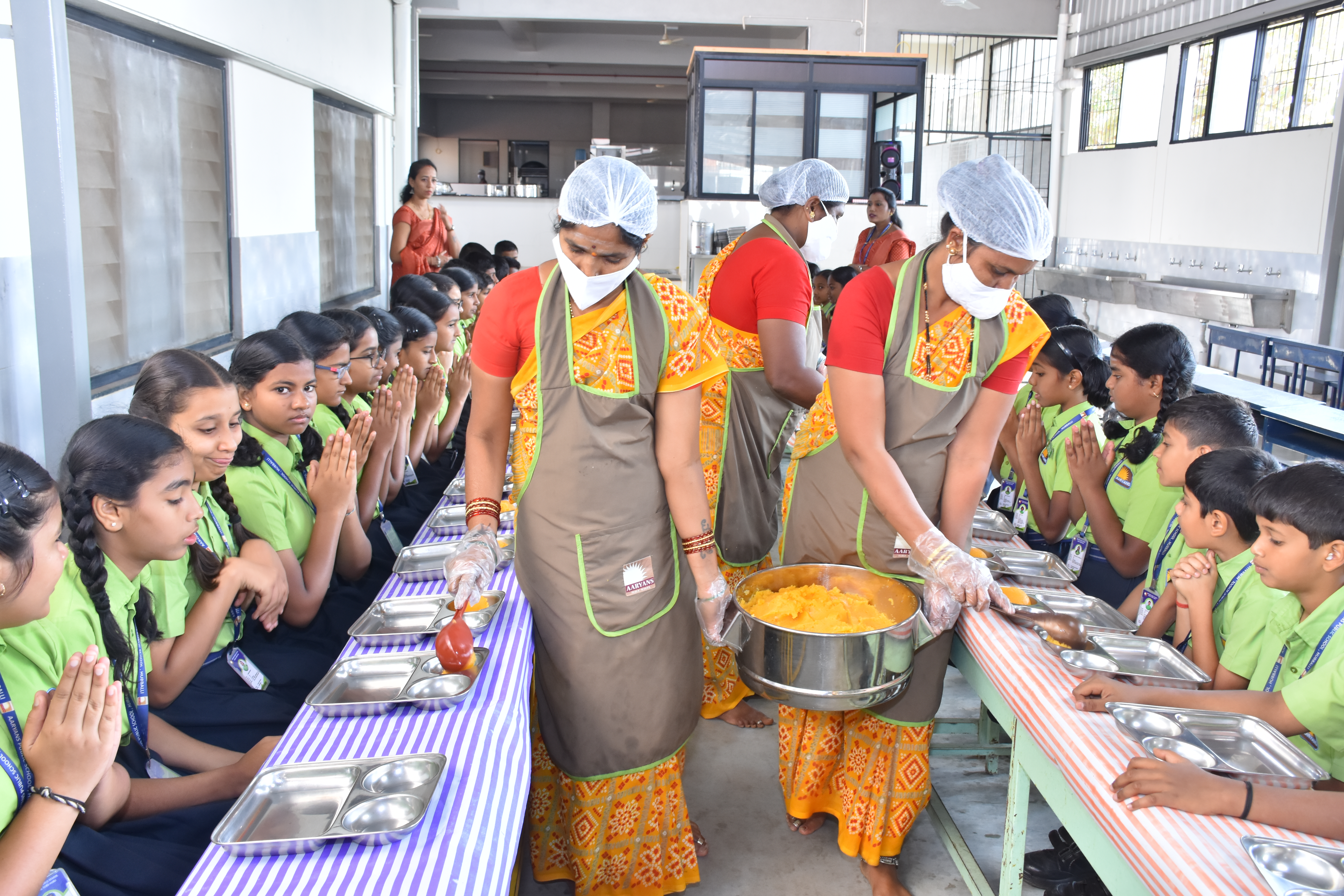 Aaryans Public School provides balanced, nutritious meals from a hygienic, ISO-certified kitchen. Our menu includes Satvik Bhojan to cater to our diverse student community. We offer breakfast from Play Home to U.K.G. and both breakfast and lunch for Std 1st to 12th.