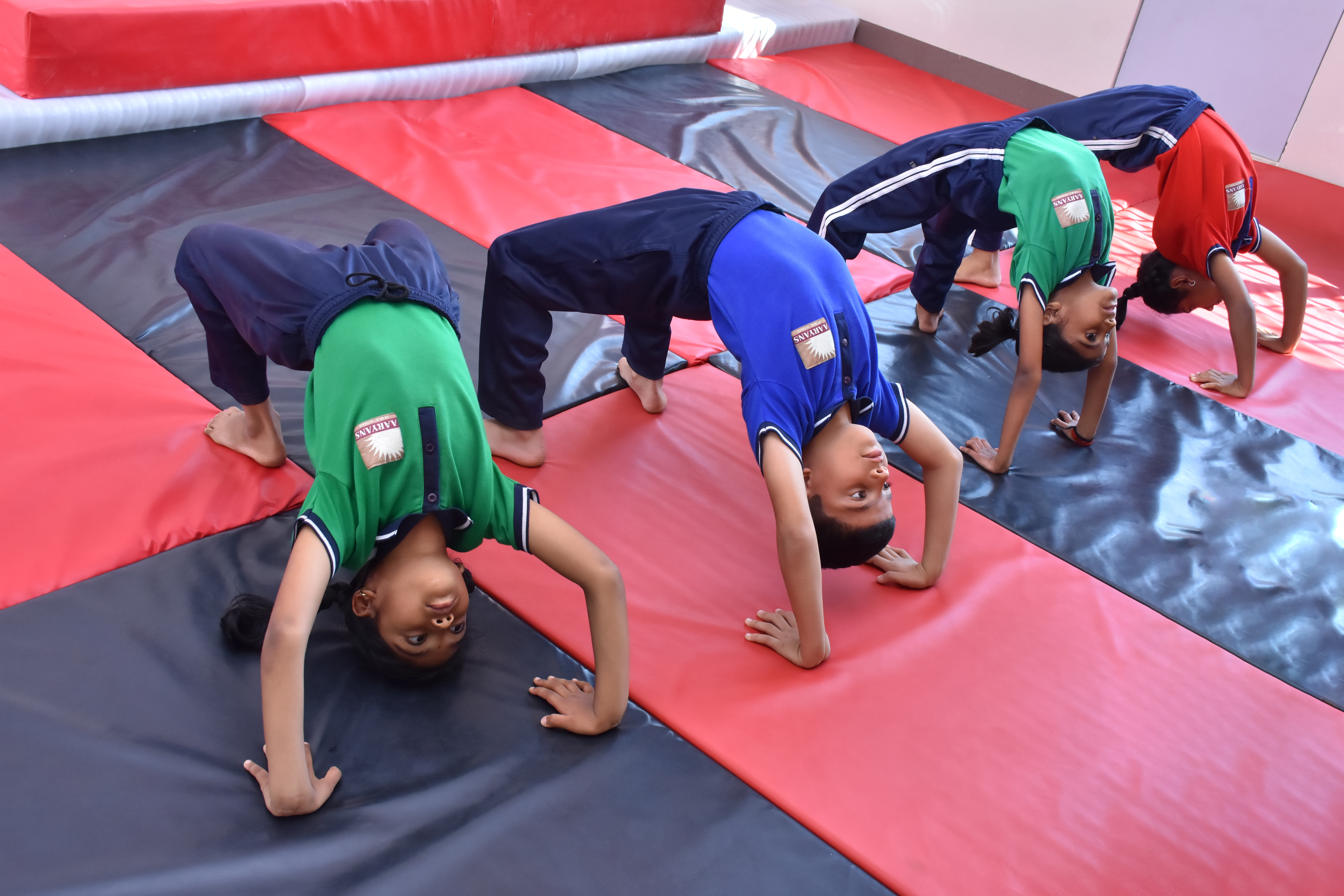 At Aaryans Public School, our gymnastics program, led by certified instructors in a dedicated Class, fosters improved focus, reduced stress, and overall well-being for students, integrating mindfulness and relaxation techniques seamlessly into their academic journey.