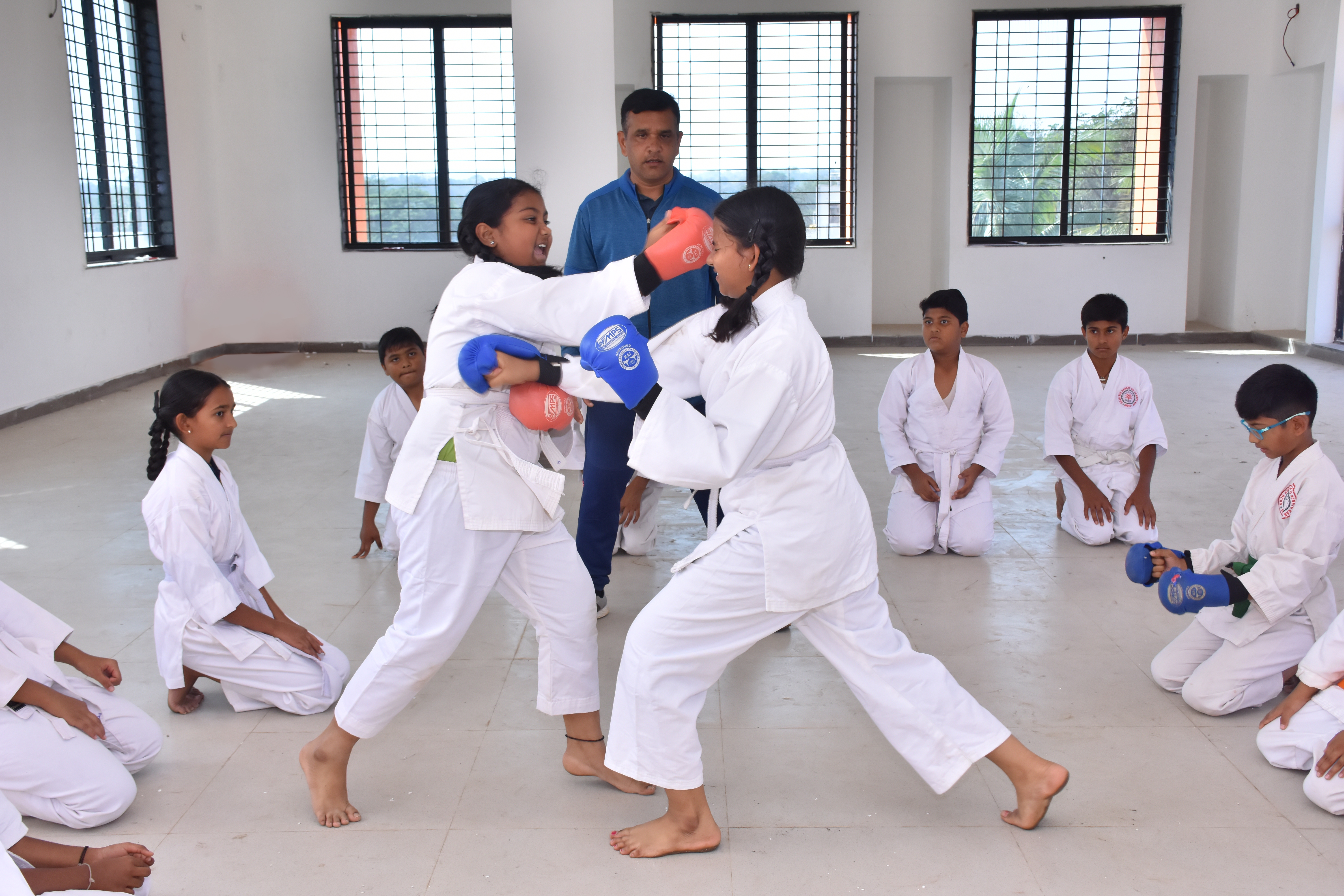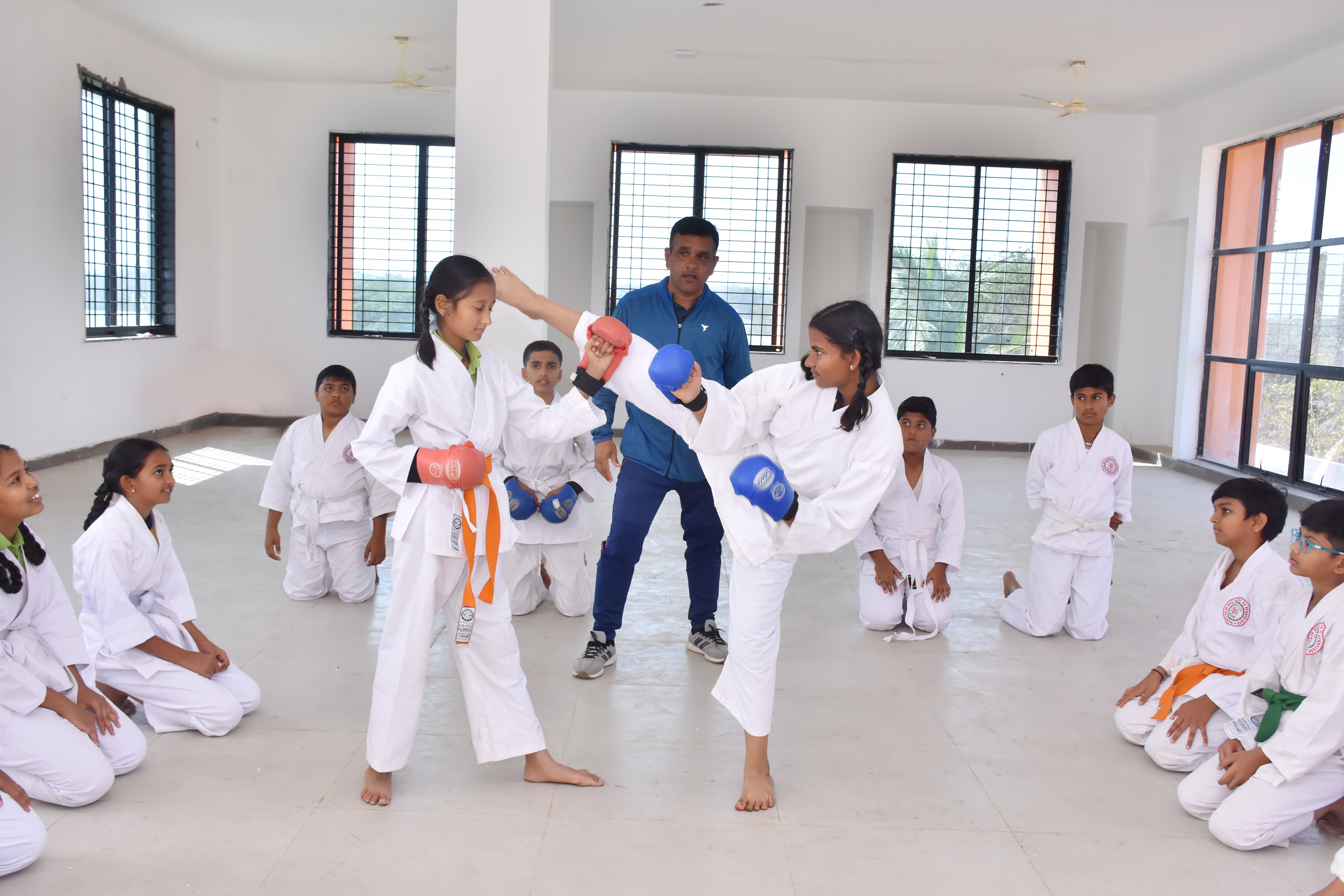At Aaryans Public School, our karate program, conducted in a specialized dojo equipped with mats and safety gear, provides students with traditional karate uniforms, guided by experienced instructors who instill discipline, respect, and self-defense skills, fostering personal growth, physical fitness, and confidence through rigorous training and belt promotions.