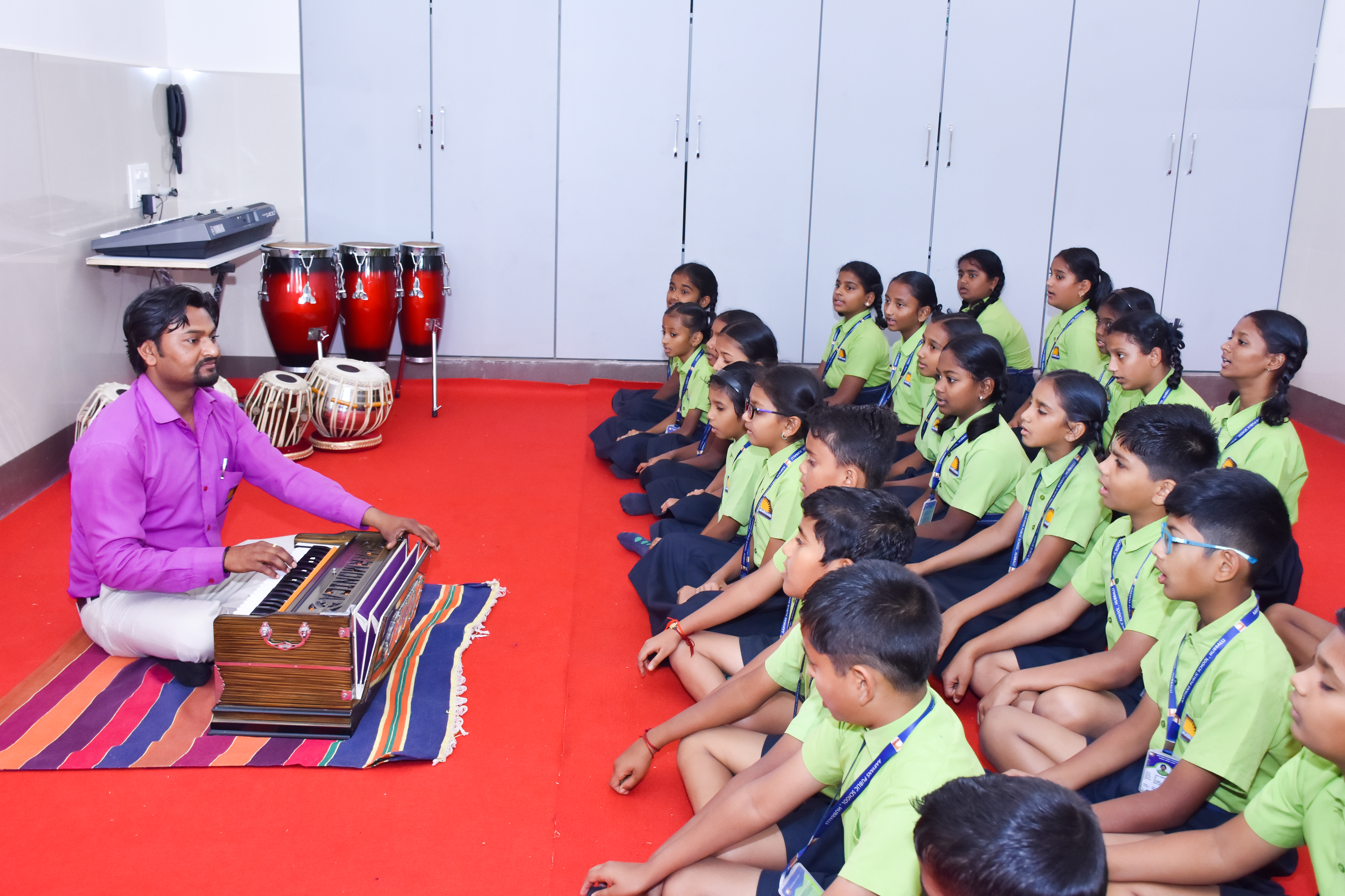 At Aaryans Public School, our singing program, supported by a variety of instruments including drums, keyboards, and bongo drums, takes place in a fully equipped music room and helps develop students' vocal skills, musicality, and self-expression. It fosters a deep appreciation for diverse musical genres and enhances stage confidence.